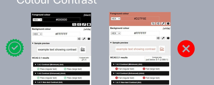 You don’t need fancy software or a developer. There are plenty of free tools online where you pop in your foreground and background colours, and they’ll tell you whether it passes. WebAIM’s contrast checker is a good place to start.